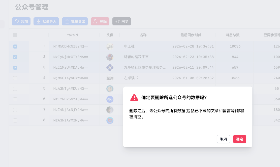 这种方式删除 所有的公众号 数据
