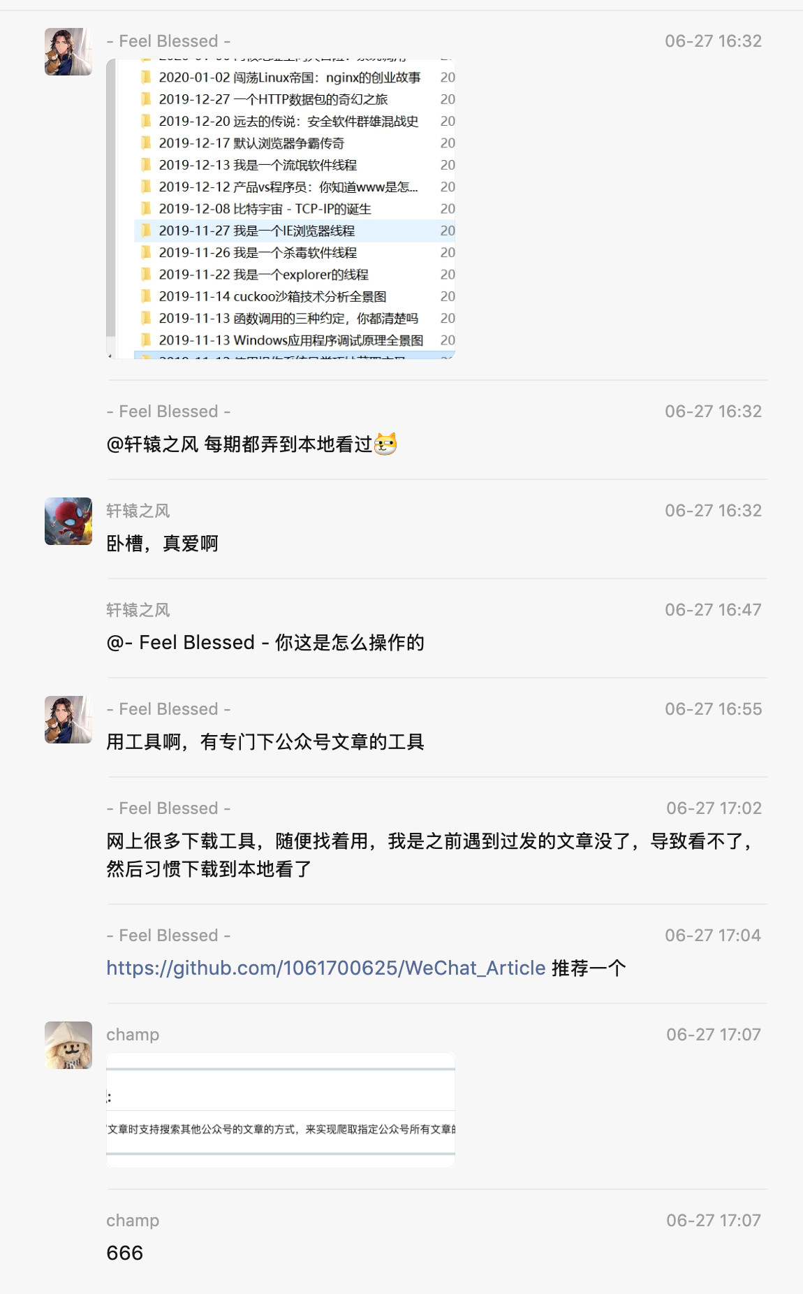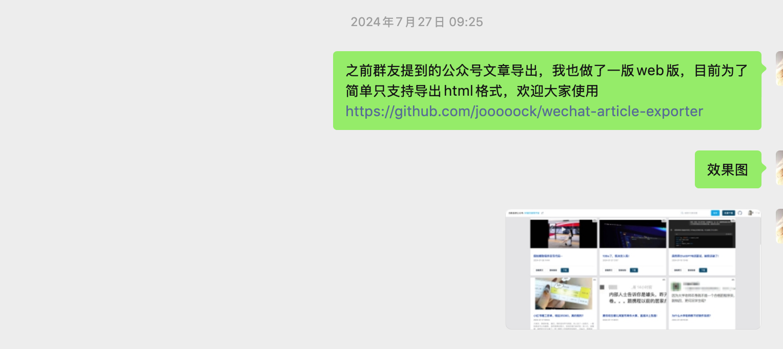 这个项目起源于在一个微信群中群友关于公众号文章下载的一个工具的分享,如下: